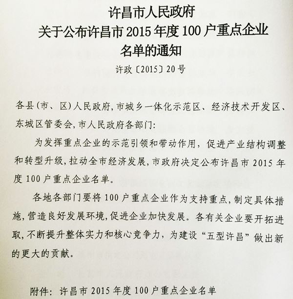 本次入圍,是市政府對公司為許昌市社會、經濟發(fā)展所做貢獻的肯定,同時也為許昌公司2015年發(fā)展提供了良好的政策環(huán)境。