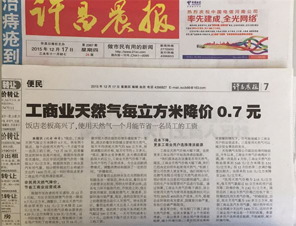 現(xiàn)在,工商業(yè)天然氣每立方米降價(jià)0.7元。我有兩個(gè)飯店,每個(gè)店使用天然氣一個(gè)月能節(jié)省一名員工的工資。”12月16日,經(jīng)營(yíng)餐飲業(yè)的鐘永良高興地說(shuō)。根據(jù)市發(fā)改委有關(guān)通知,市區(qū)非居民銷(xiāo)售氣價(jià)統(tǒng)一降低0.7元/立方米。根據(jù)我市的工商業(yè)及汽車(chē)用氣量,預(yù)計(jì)明年相關(guān)行業(yè)將減少支出約1400萬(wàn)元。這一利好將促進(jìn)更多工商業(yè)用戶(hù)選擇清潔能源。