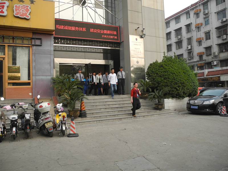 許昌市天倫燃氣有限公司物業(yè)人員接到擬定的大廈火災(zāi)報警后,第一時間趕到現(xiàn)場,首先利用滅火器進行了初期火苗控制,同時將火情上報總經(jīng)理,針對火情,總經(jīng)理下達啟動消防預(yù)案指令,物業(yè)人員迅速啟動消防警報、關(guān)閉樓層電源,電梯迫降1樓。