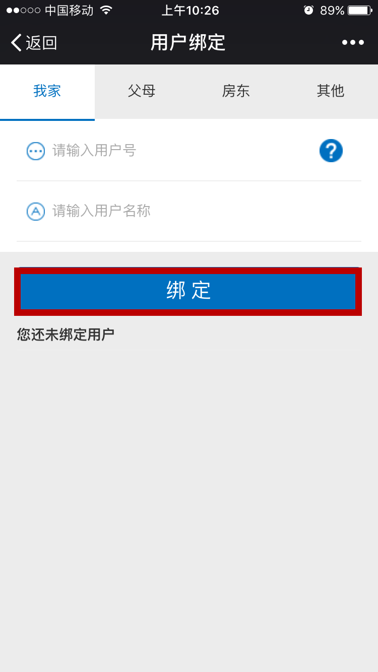 第三步輸入需要綁定的用戶姓名及戶號→點擊綁定