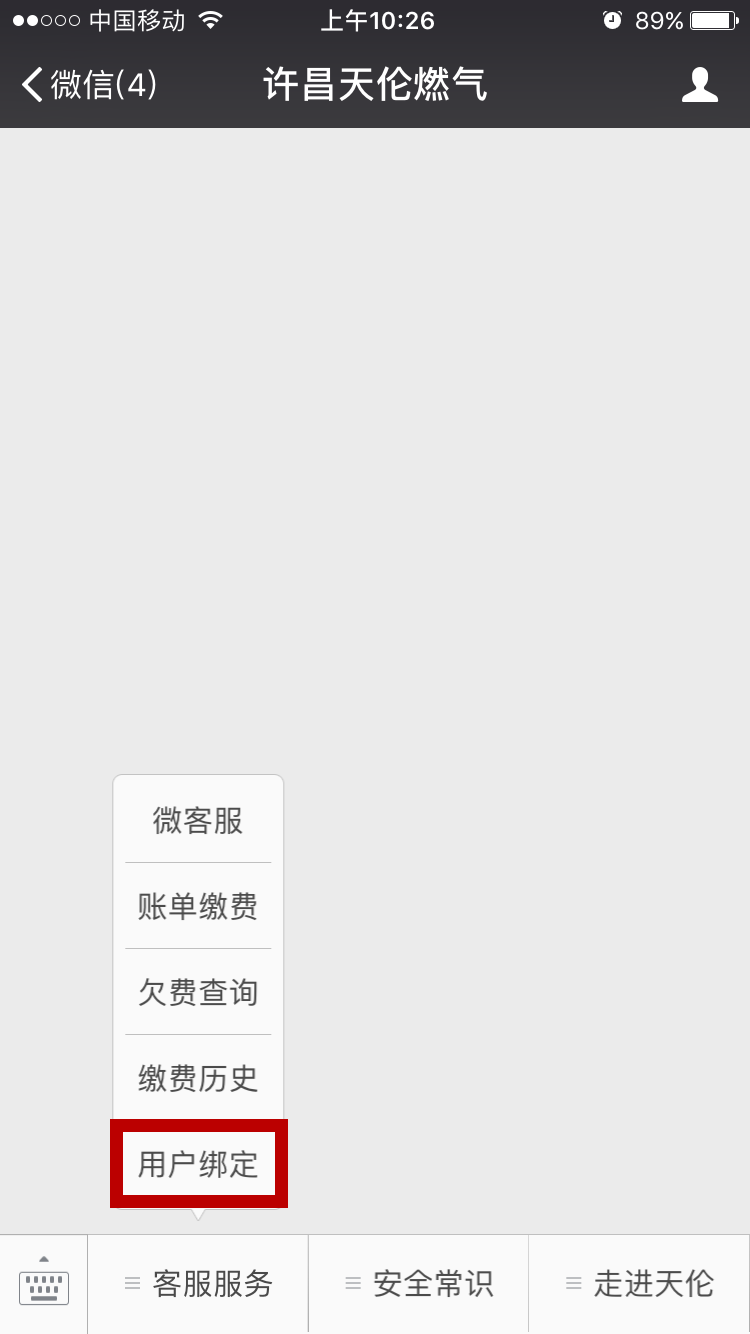 第二步進入微信公眾號點擊客服服務(wù)→點擊用戶綁定