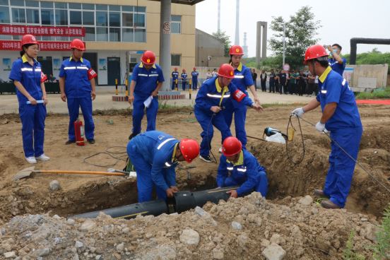 本次演練以實(shí)戰(zhàn)的方式進(jìn)行,模擬濱河站站前濱河大道的天然氣管道被第三方施工挖斷,大量天然氣泄漏。公司接線員接到報(bào)警后,立即上報(bào)公司安委會(huì),公司迅速啟動(dòng)《燃?xì)馐鹿蕬?yīng)急預(yù)案》,對(duì)現(xiàn)場(chǎng)進(jìn)行封鎖并緊急通知相關(guān)部門(mén)到現(xiàn)場(chǎng)進(jìn)行搶險(xiǎn)作業(yè),各組人員在接到客服中心負(fù)責(zé)人指令后,迅速到達(dá)施工現(xiàn)場(chǎng)進(jìn)行現(xiàn)場(chǎng)警戒控制。關(guān)閉閥門(mén)、排放余氣、消防警戒、檢查現(xiàn)場(chǎng)燃?xì)鉂舛?、搶修作業(yè)、泄漏測(cè)量、恢復(fù)供氣、解除警戒,一個(gè)個(gè)搶險(xiǎn)程序在參與人員操作下標(biāo)準(zhǔn)完成。
