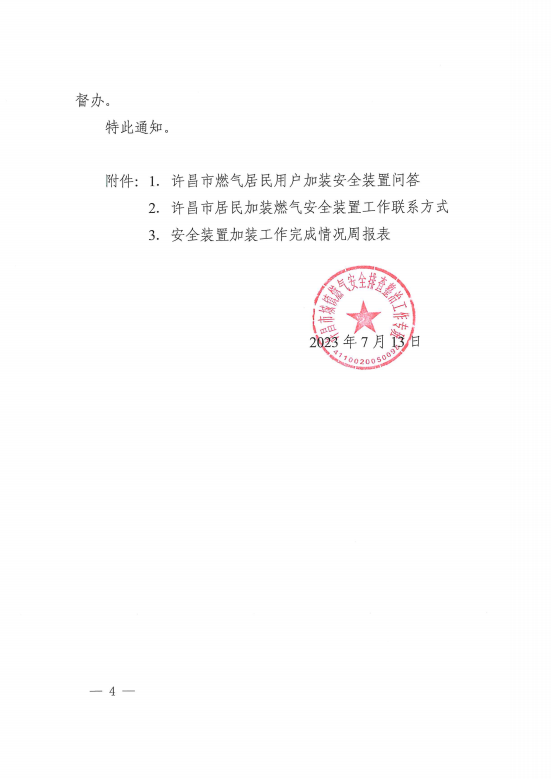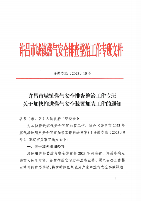 關(guān)于加快推進燃氣安全裝置加裝工作的通知 許燃專班〔2023〕10號